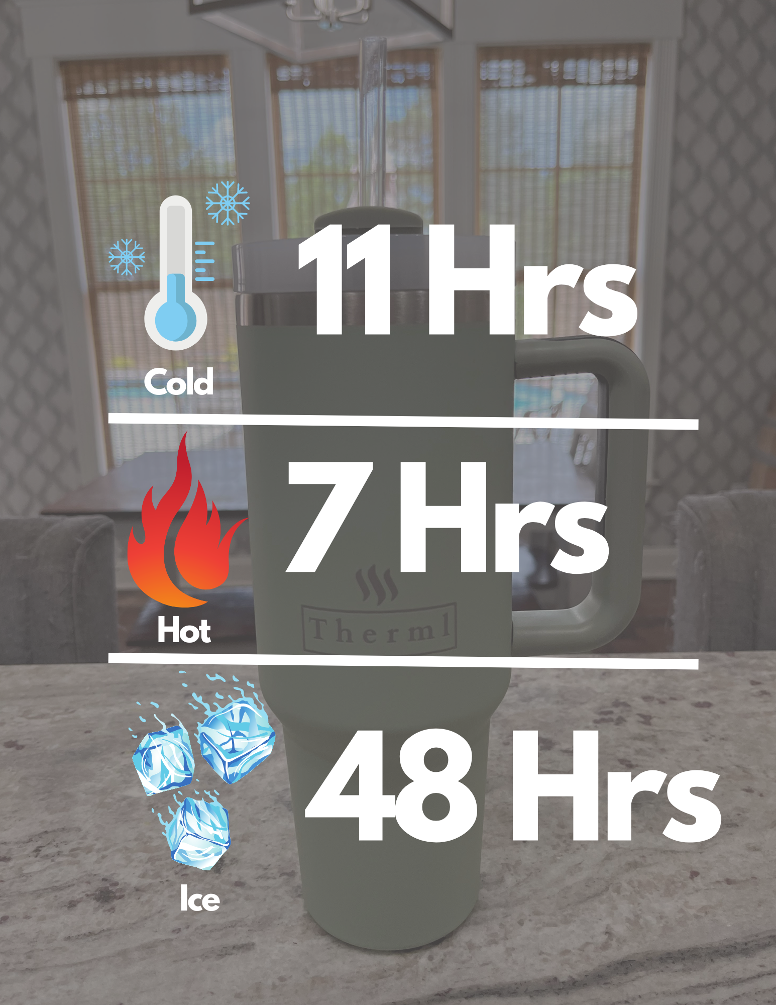 The Therml Comfort tumbler is leak proof and will keep your favorite beverage colder and hotter than the competition. This tumbler contains high grade stainless steel inside and out. The Therml Comfort is a large capacity tumbler at 40 oz. and sports a ergonomically shaped handle for maximum comfort. A portion of every Therml product sold goes to Maddie's Footprints. Maddie's Footprints is a non-profit organization that supports families who have lost an infant. Buy a great product and support a great cause!